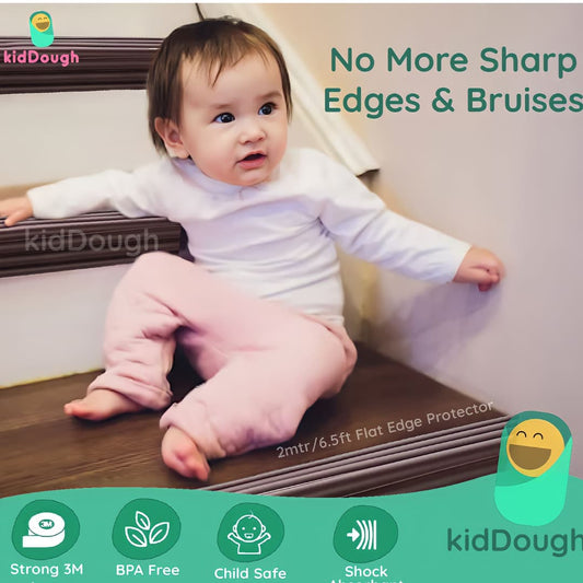 KIddough Baby Proofing Kit with 2M Edge Protector, 5 Safety Locks, 6 Socket Guards, 2 Door Guards, Brown