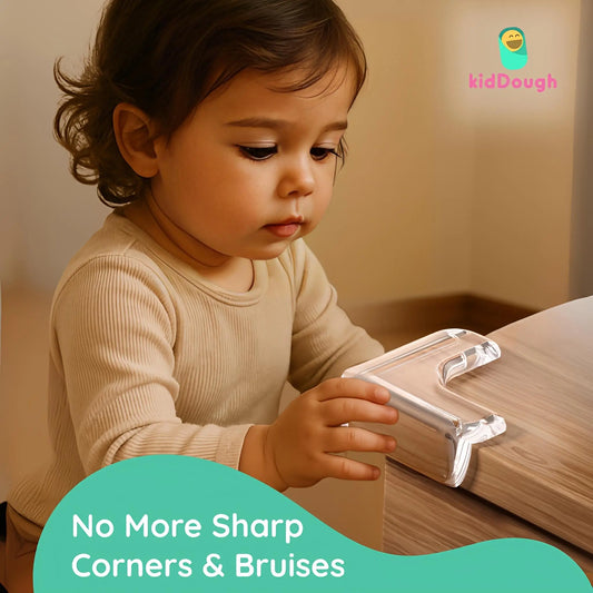 Say goodbye to sharp corners with KidDough™ Corner Guards. These soft, cushioned, transparent guards fit neatly on furniture corners such as tables, cabinets, and TV units, helping to protect your child from painful accidents.