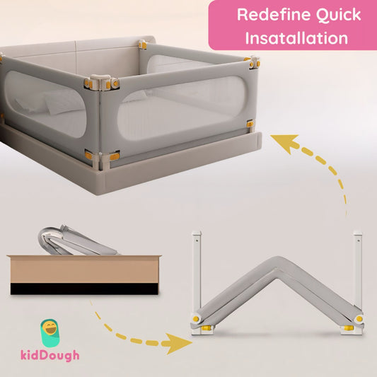 Kiddough Bed Railing for Baby Safety (6ft*5ft*6ft, Three Side, Grey)