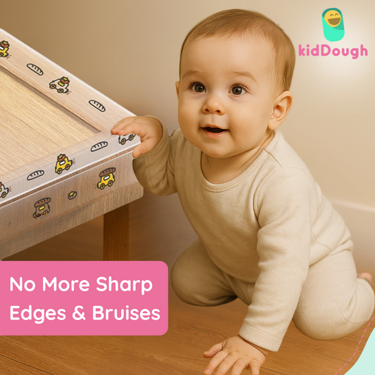 KidDough Baby Proofing Edge Protector, Transparent with Car Print, 2 Metres