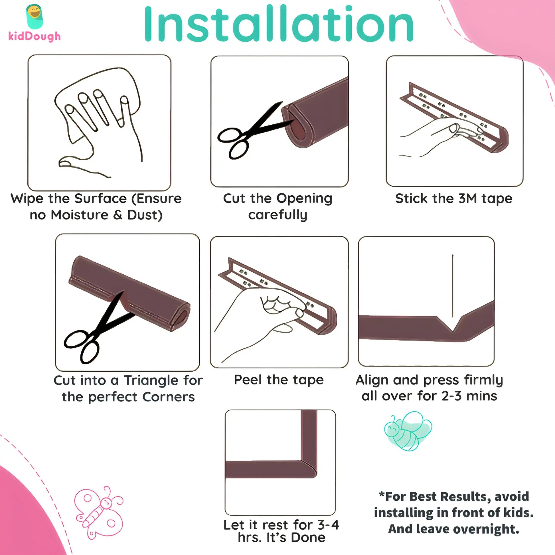✅ Easy to Install- It is very easy to install the Kiddough Safety Strip. Comes with 3M tape, just peel the 3M tape cover and paste on the desired sharp table corner, chair, TV, Bed and more. It can be removed without damaging furniture too.