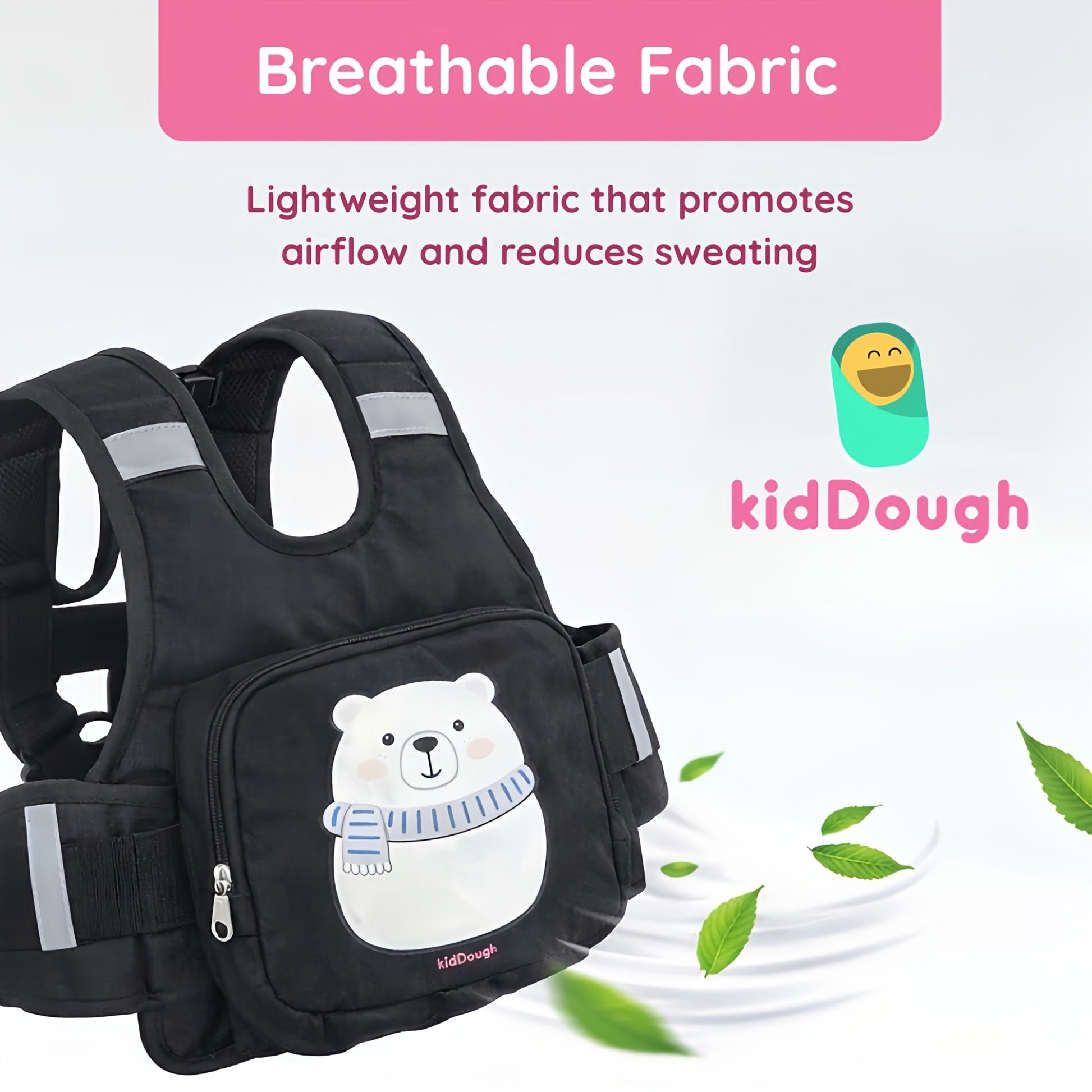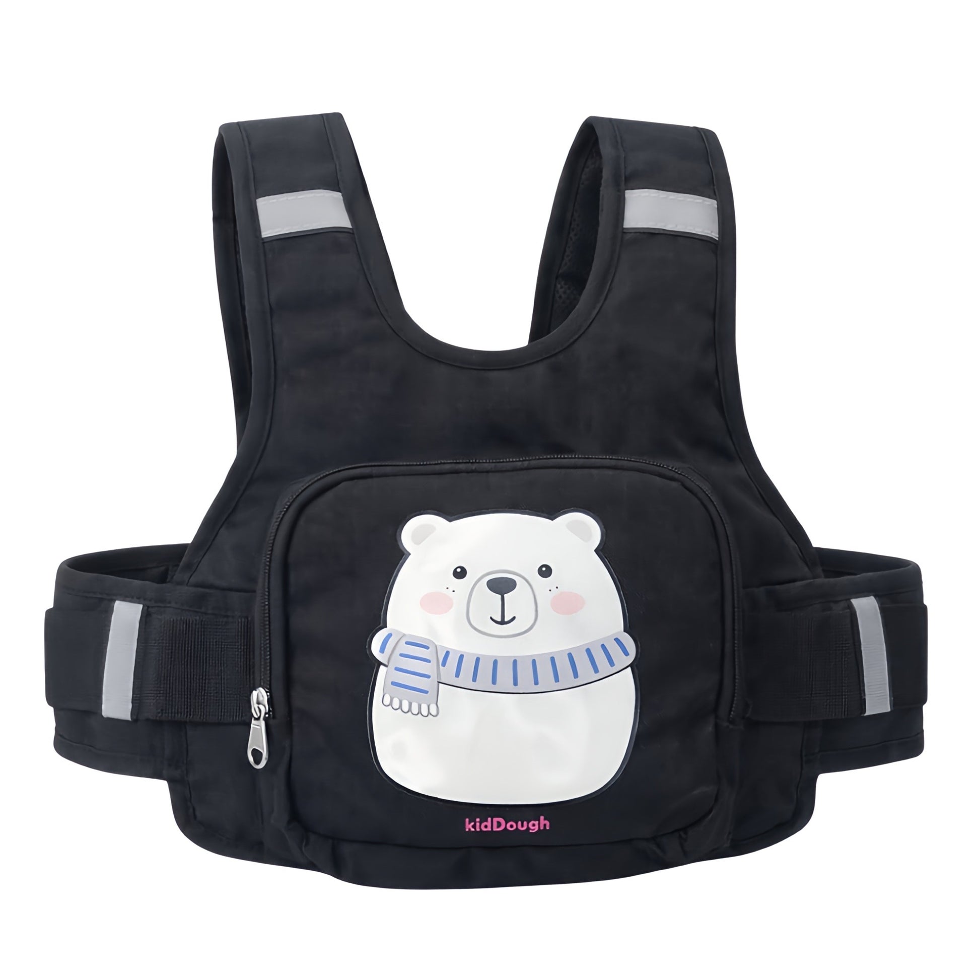 KidDough Baby Safety Belt for Two Wheeler Bike/Scooty | Harness Safety Belt for Kids Safety | Strong Buckles with Adjustable Straps and Double Stiching for Extra Safety (With Storage (Black))
