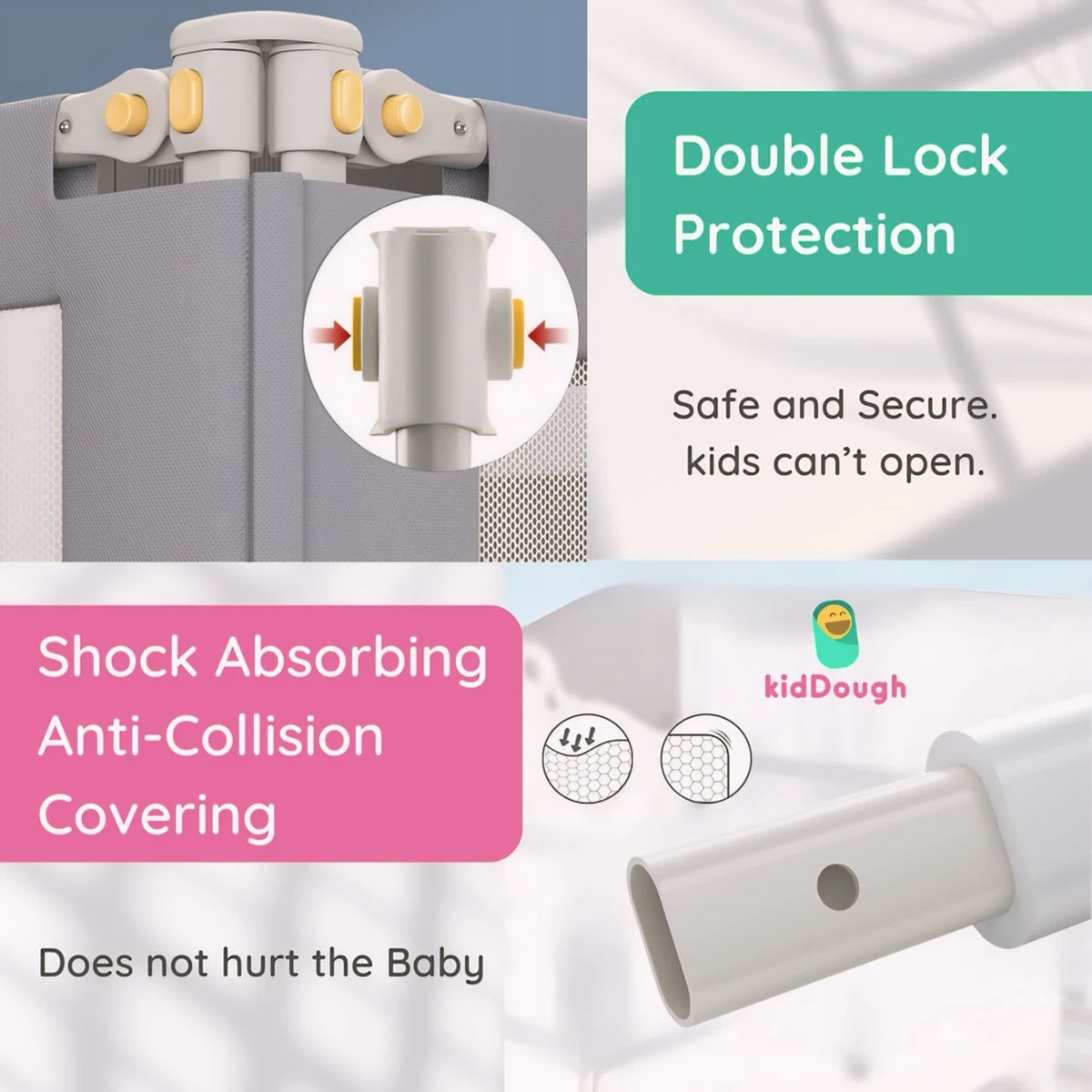 Keep your baby secure while they sleep with the Kiddough Bed Railing for Baby Safety — a must-have baby proofing essential for every household. This bed rail is a strong safety guard that prevents accidental falls and creates a protective sleeping environment.