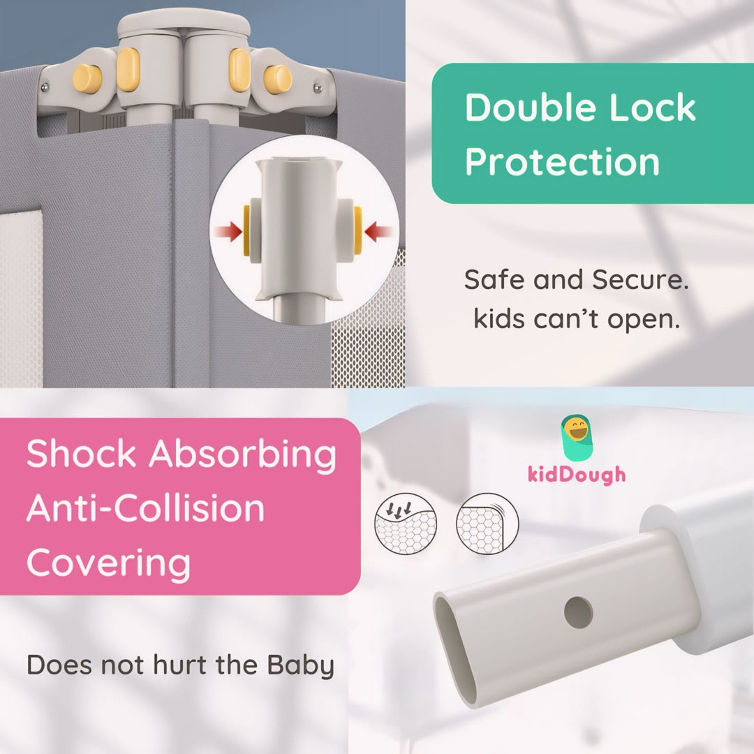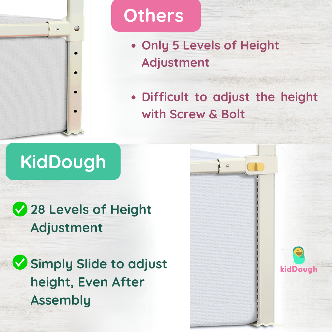 Keep your baby secure while they sleep with the Kiddough Bed Railing for Baby Safety — a must-have baby proofing essential for every household. This bed rail is a strong safety guard that prevents accidental falls and creates a protective sleeping environment.