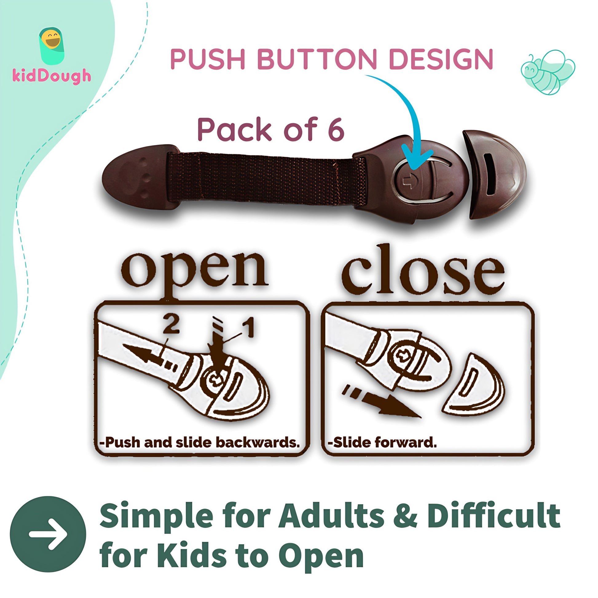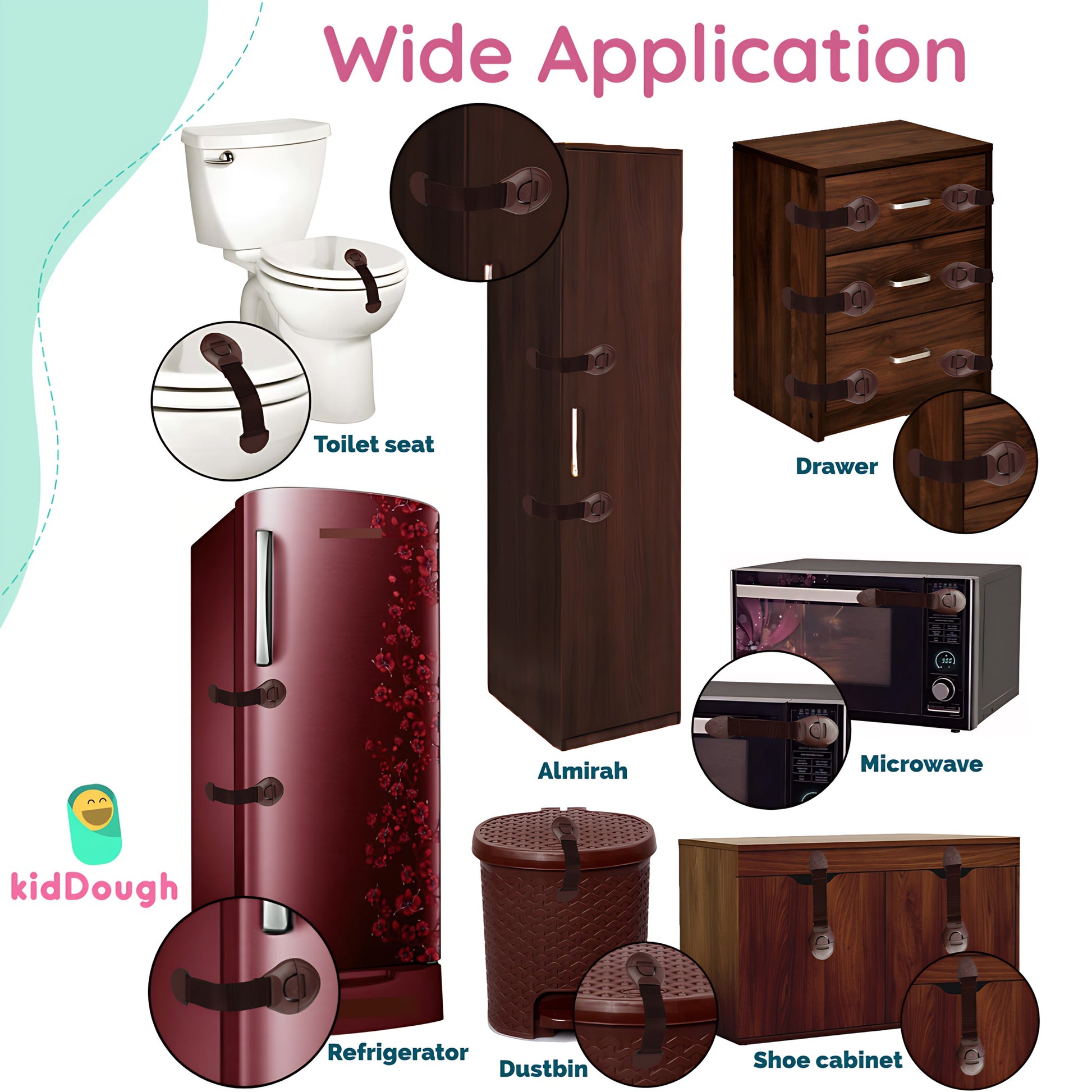 Kiddough Furniture Safety Locks for Kids - Pack of 6, Brown