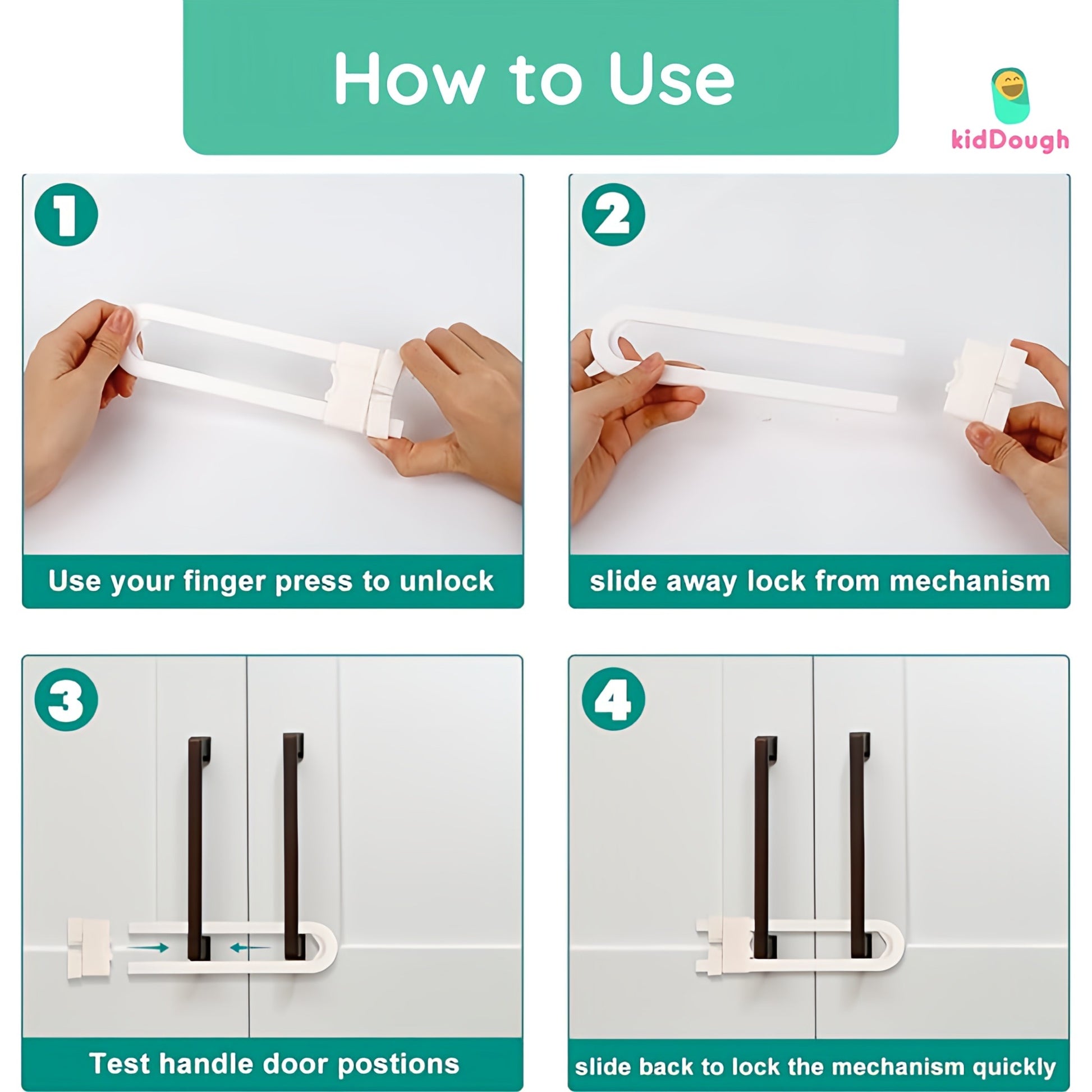 Easy Installation: Designed for convenience, the Kiddough U-Shape Lock requires no screws, adhesives, or complicated setup. Simply slide it on, adjust it to fit, and your home is instantly safer.